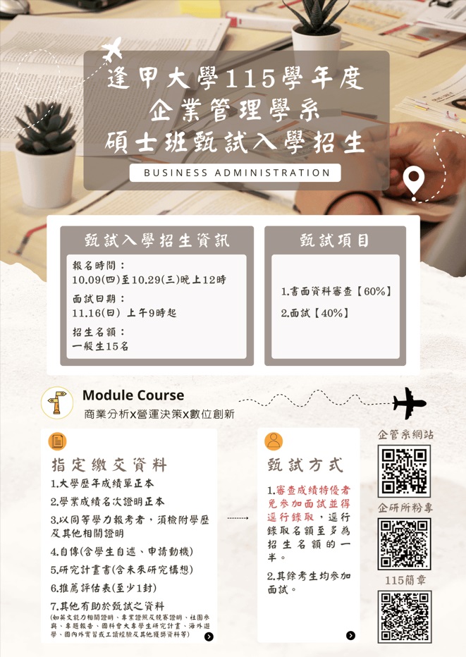 1.招生說明會地點:逢甲大學商學大樓514教室